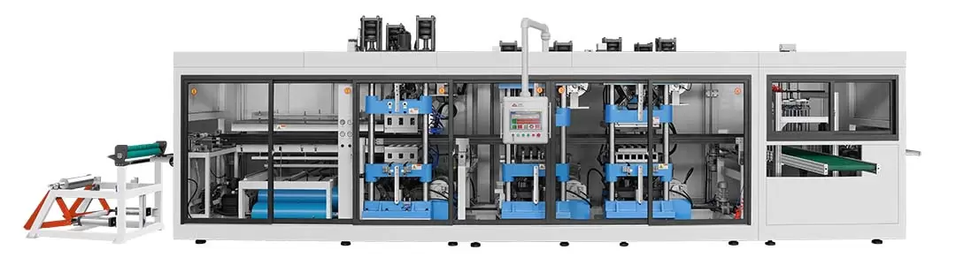 Mashina PLC boshqaruv tizimi va sensorli ekranli ish interfeysi bilan jihozlangan bo'lib, foydalanuvchilarga isitish harorati, qoliplash vaqti va kesish tezligi kabi ishlab chiqarish parametrlarini osongina o'rnatish va sozlash imkonini beradi. To'liq avtomatik oziqlantirish, isitish, qoliplash, sovutish, kesish va stacking tizimi qo'lda ishlashni sezilarli darajada kamaytiradi, operatsion qiyinchilik va xodimlar xarajatlarini kamaytiradi. Aqlli boshqaruv tizimi, shuningdek, real vaqt rejimida uskunaning ish holatini kuzatishi mumkin va uskunaning barqarorligi va xavfsizligini yaxshilash uchun avtomatik xato diagnostikasi va signalizatsiya funktsiyalariga ega.