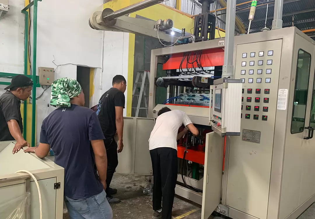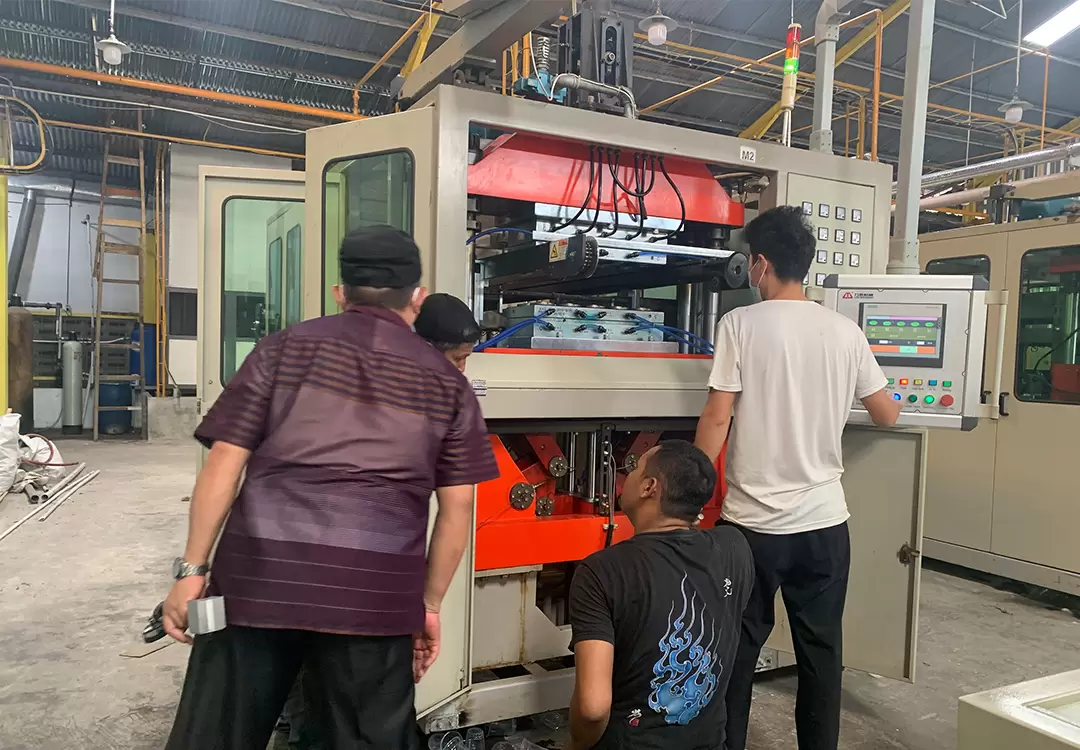 2023-yil avgust oyi boshida jamoamiz eski mijozlarni ko‘rish uchun Indoneziyaga jo‘nab ketdi. Bu safar jamoamiz mijozning zavodiga borib, uskunani ishga tushirish bo‘yicha muhandisni o‘zimiz bilan olib ketdi. Birinchi maqsad plastik termoformlash mashinalari uchun agentlarni topish, ikkinchisi esa Indoneziyadagi eski mijozlarni yana saqlab qolishdir. Mijozlarning jihozlarini sozlash va ularga xizmat ko'rsatish va mijozlar uchun kundalik ishlab chiqarishdagi umumiy nosozliklar va muammolarni hal qilish. Mijozlar bizning jamoamizga tashrif buyurishni iliq kutib olishadizavod. Ushbu mijoz 2021-yilda kompaniyamizdan ikkita TQC-650B plastik stakan mashinasi va ikkita TJ-750D PP PS plastik plastinka ekstruderini sotib oldi! bizning kompaniyamiz 2021 yilda!