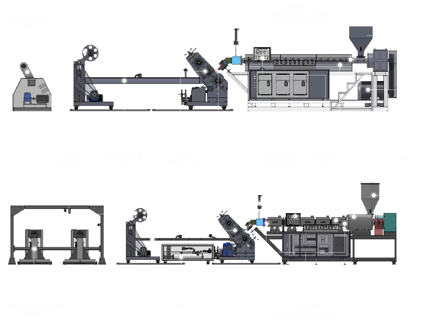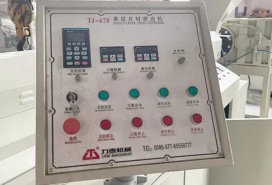 Plitalar ekstruderi ekstruziya, kalendarlash, tortish va prokatdan iborat. Asosiy qismlar aşınmaya bardoshli, korroziyaga chidamli, yuqori sifatli maxsus ishlov berilgan yuqori haroratga chidamli. Qolipli ekstruding kanalidagi past qarshilik kuchi varaq qalinligini bir tekis qiladi, uchta rolikdagi ichki spiral idish samarali sovutishni ta'minlaydi va gidravlik bosim moslamasi bilan to'r almashtirgichni o'zgartirish va o'rnatish oson, mashinani to'xtatish kerak emas. Mashina PP / PS granulasini bitta rangli PP / PS varag'iga ekstruziya qiladi, bu plastik termoformlash mashinalari tomonidan plastik mahsulotlarni ishlab chiqarish uchun ishlatiladi, masalan, stakanlar, oziq-ovqat idishlari, tovoqlar, idish-tovoqlar, kosalar, qopqoqlar va boshqalar.