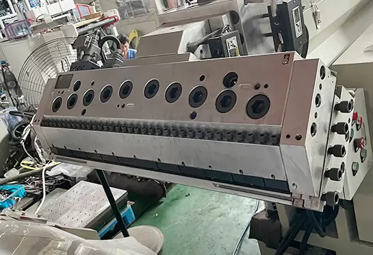 45 ° qiyshiq ekstruziya qolipi: qolip boshining ekstruziya kanalida past qarshilik kuchi varaq qalinligini bir tekis qiladi.